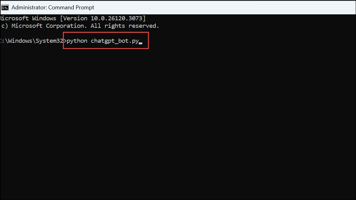 Шаг 4: Создайте скрипт Python (например, chatgpt_bot.py