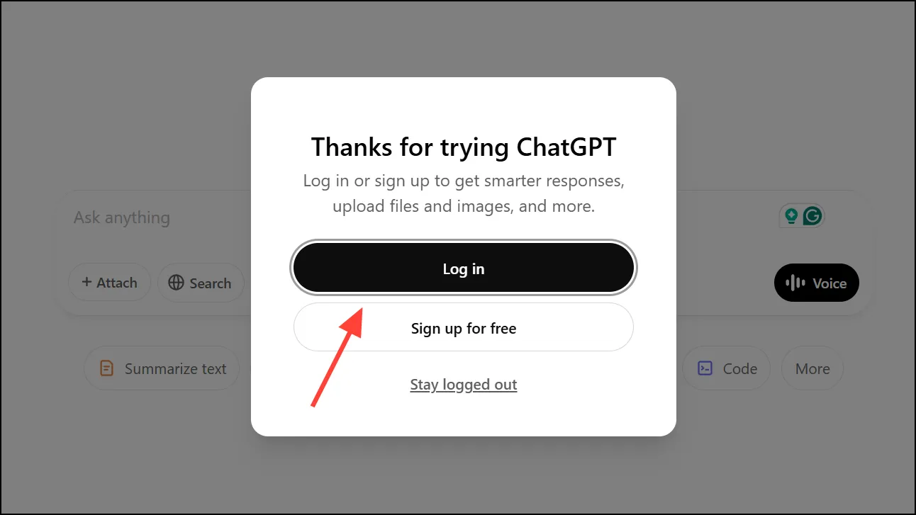 Шаг 2: После установки запустите приложение ChatGPT из меню «Пуск». Вам будет предложено войти в систему или создать учетную запись OpenAI для доступа к чат-боту.