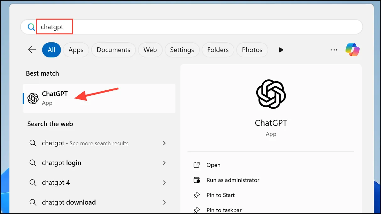 Самый простой и эффективный способ интеграции ChatGPT с Windows 11 — установка официального настольного приложения ChatGPT, доступного через Microsoft Store. Этот метод обеспечивает собственную интеграцию, более плавную работу и быстрый доступ непосредственно с рабочего стола или панели задач.
