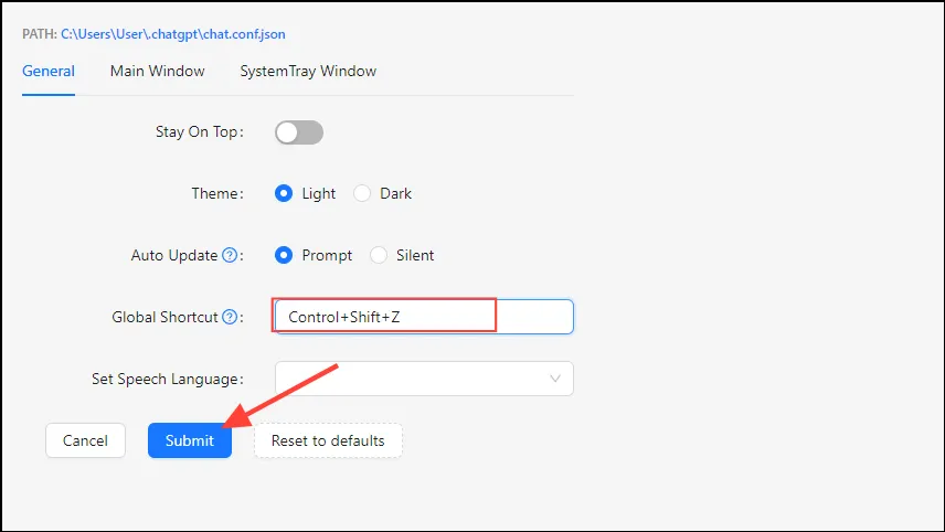 Примечание. Чтобы глобальный ярлык работал, приложение ChatGPT должно быть запущено. Если вы закроете приложение, ярлык не откроет его.